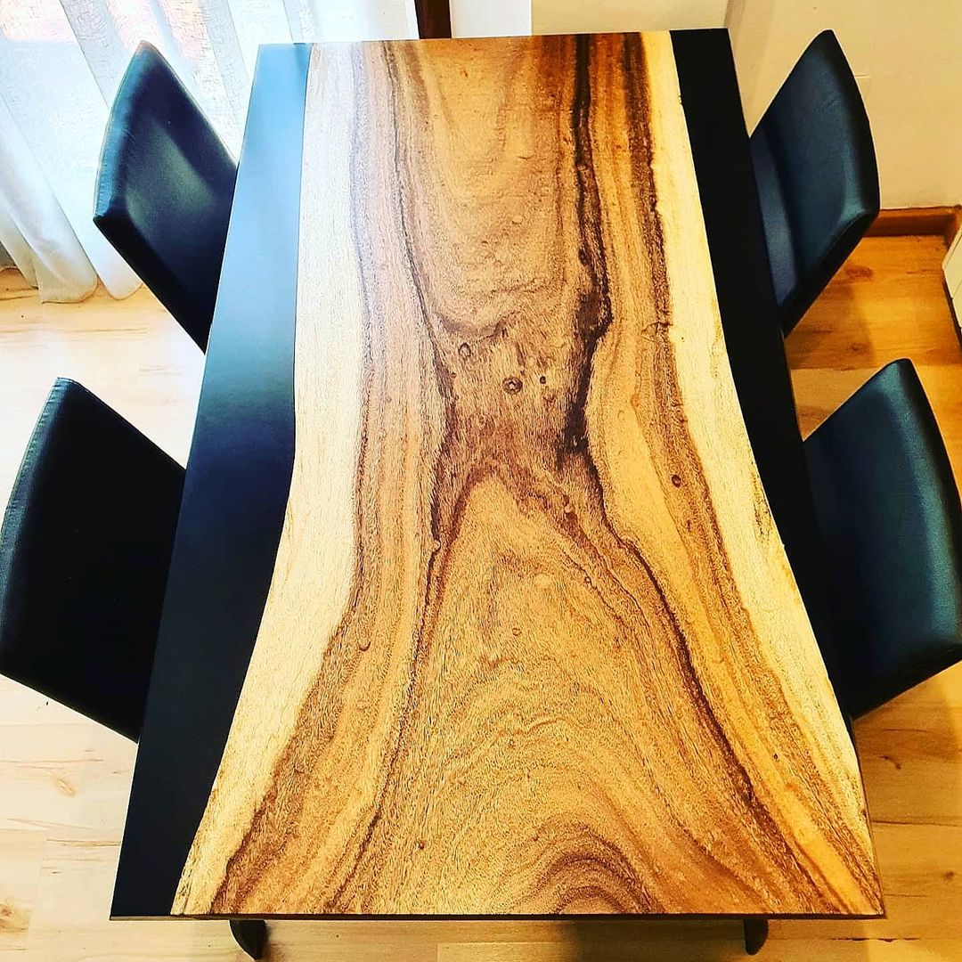 Mesa Resina Negra en madera tropical Samanea Saman